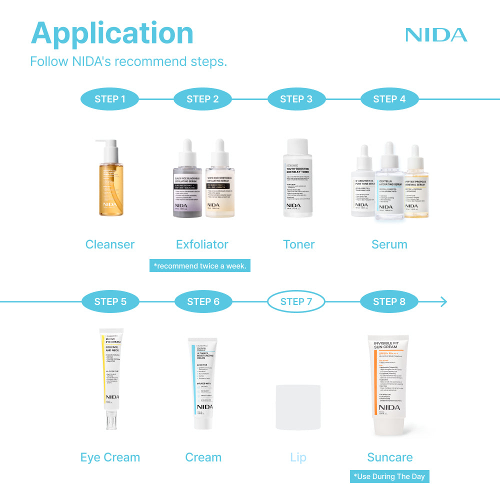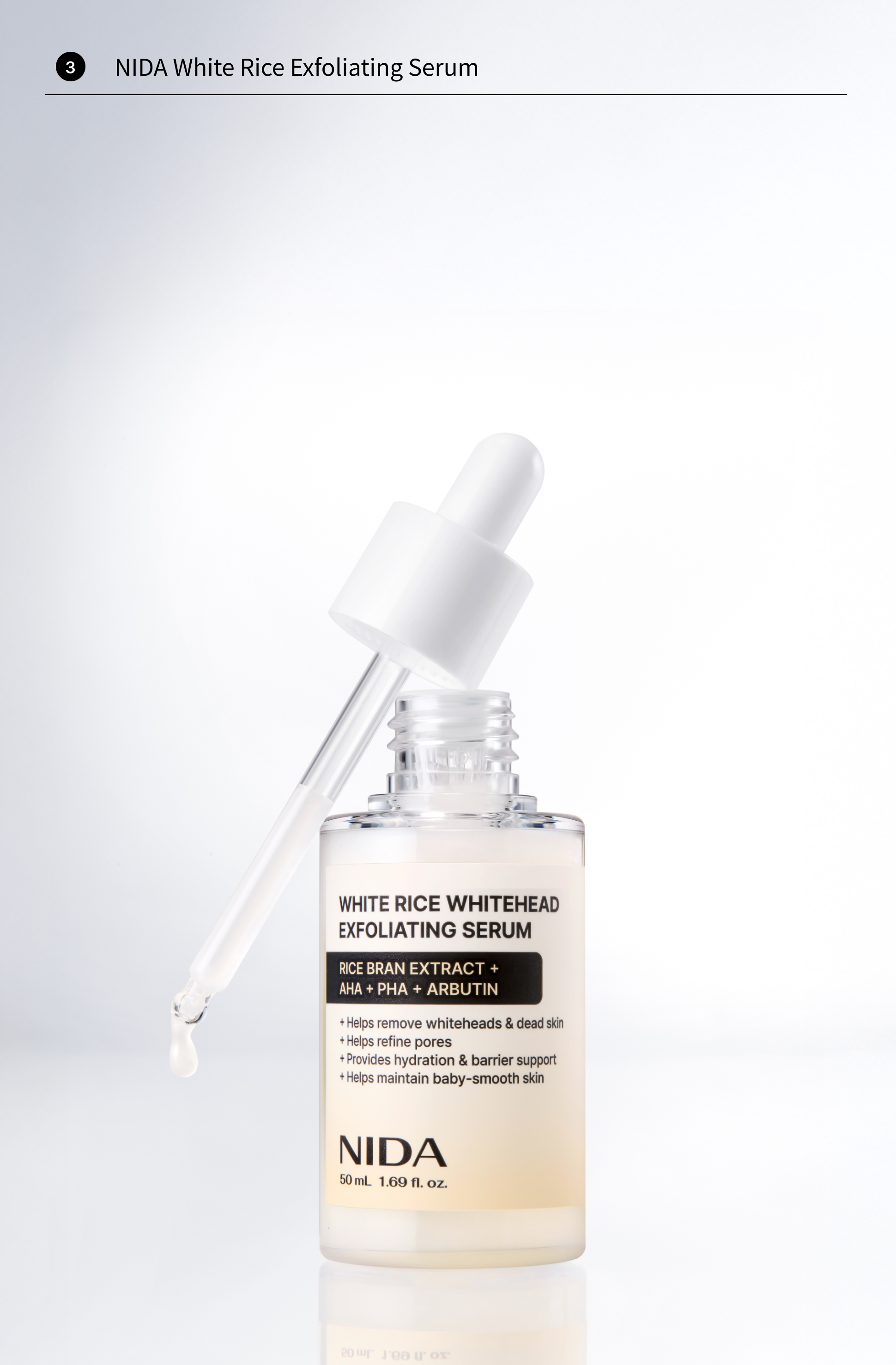 • 3️⃣ NIDA White Rice Exfoliating Serum