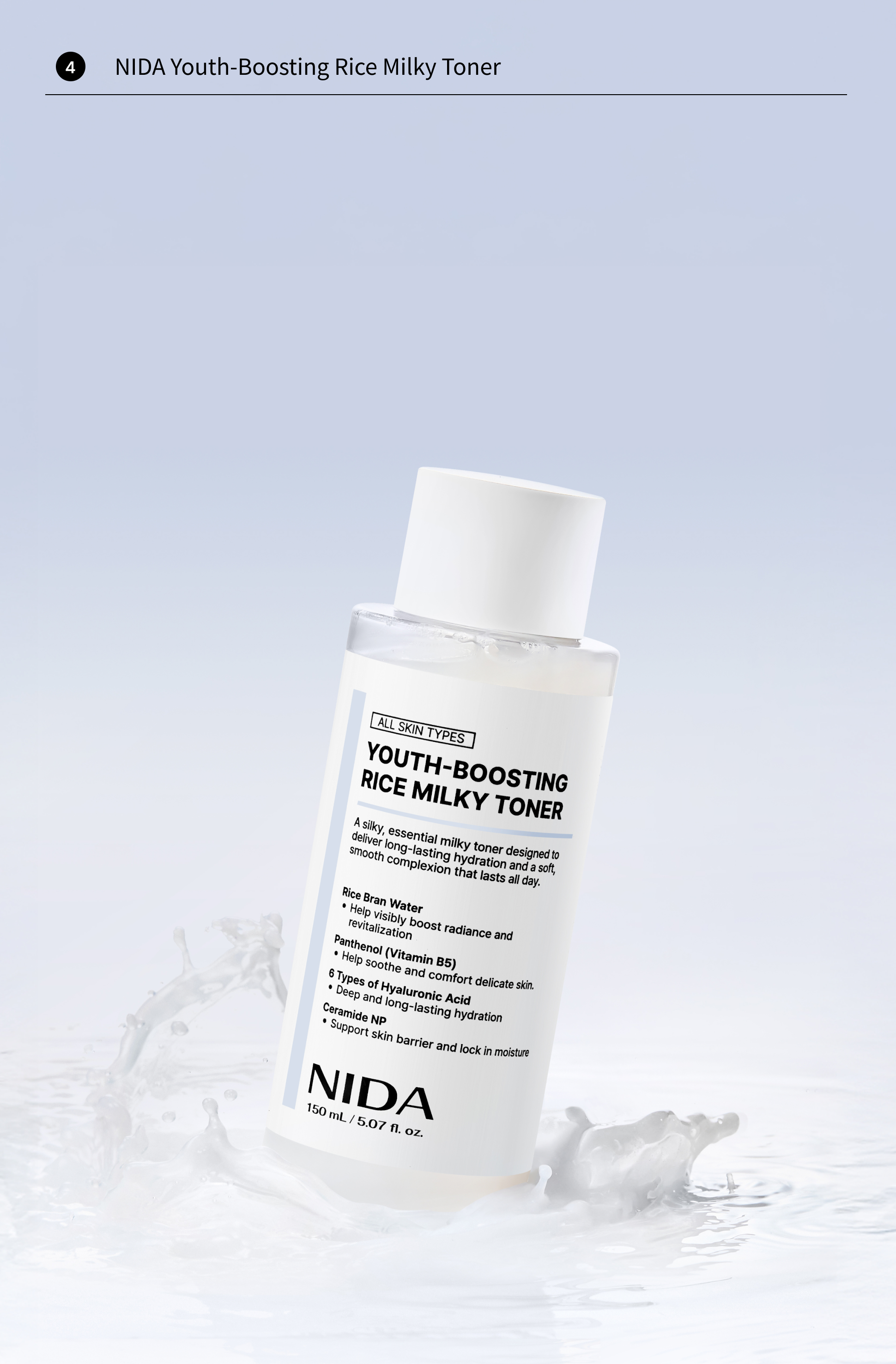 • 4️⃣ NIDA Youth-Boosting Rice Milky Toner