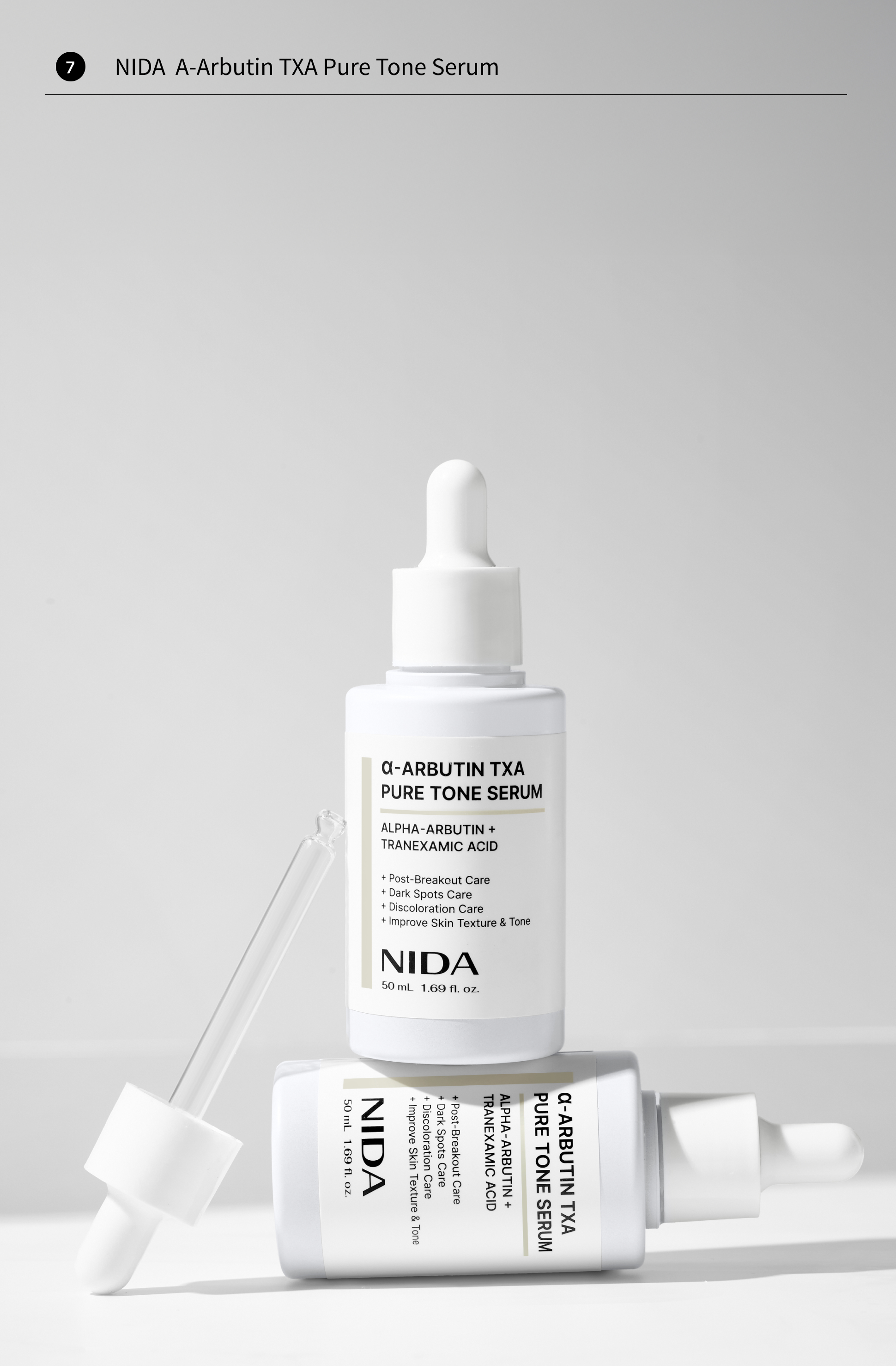 • 7️⃣ NIDA α-Arbutin TXA Pure Tone Serum